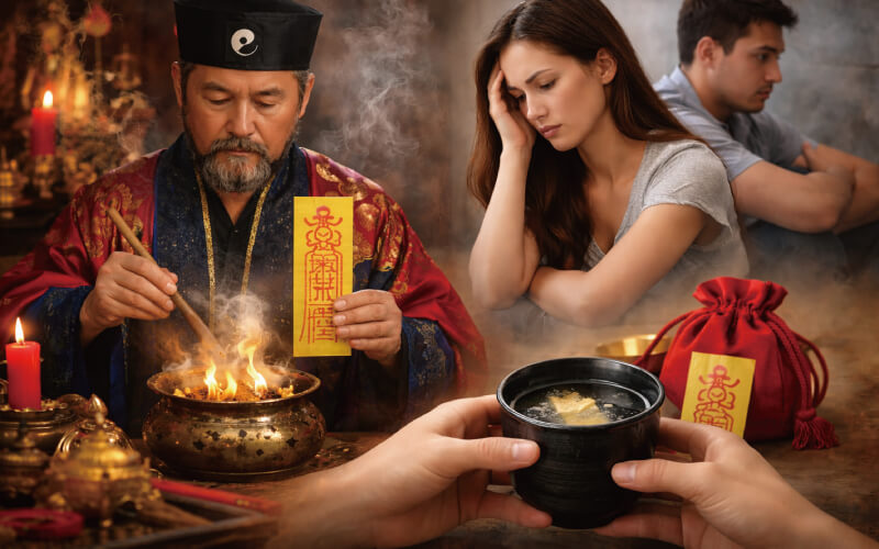 也因為很多求助者不相信我說的話,而去找別家老師用另外一種方法挽救,如調人符法,自修法,代修法,泰國情降,百分之95都是無效收場。